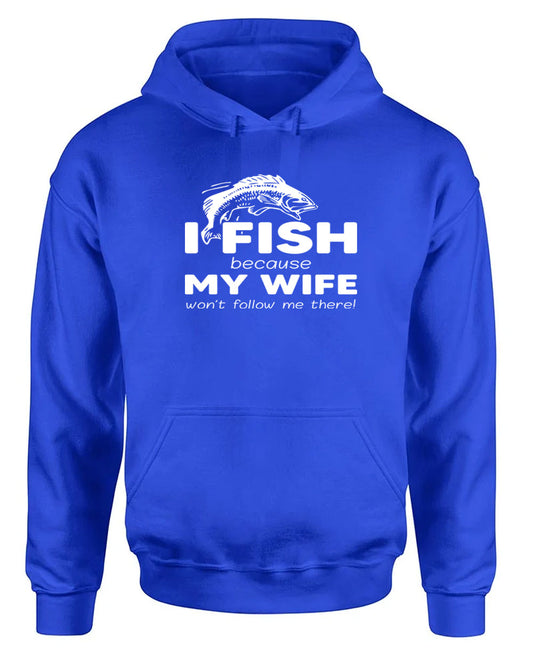 I Fish because my Wife won't follow me there, funny Fishing hoodie