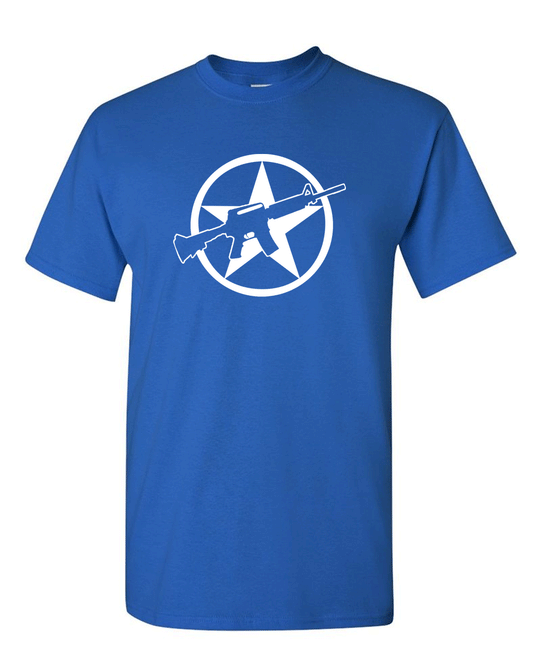 America Gun Tees Star Men's T-Shirt Rifle Flag USA Warrior Military Style Tee